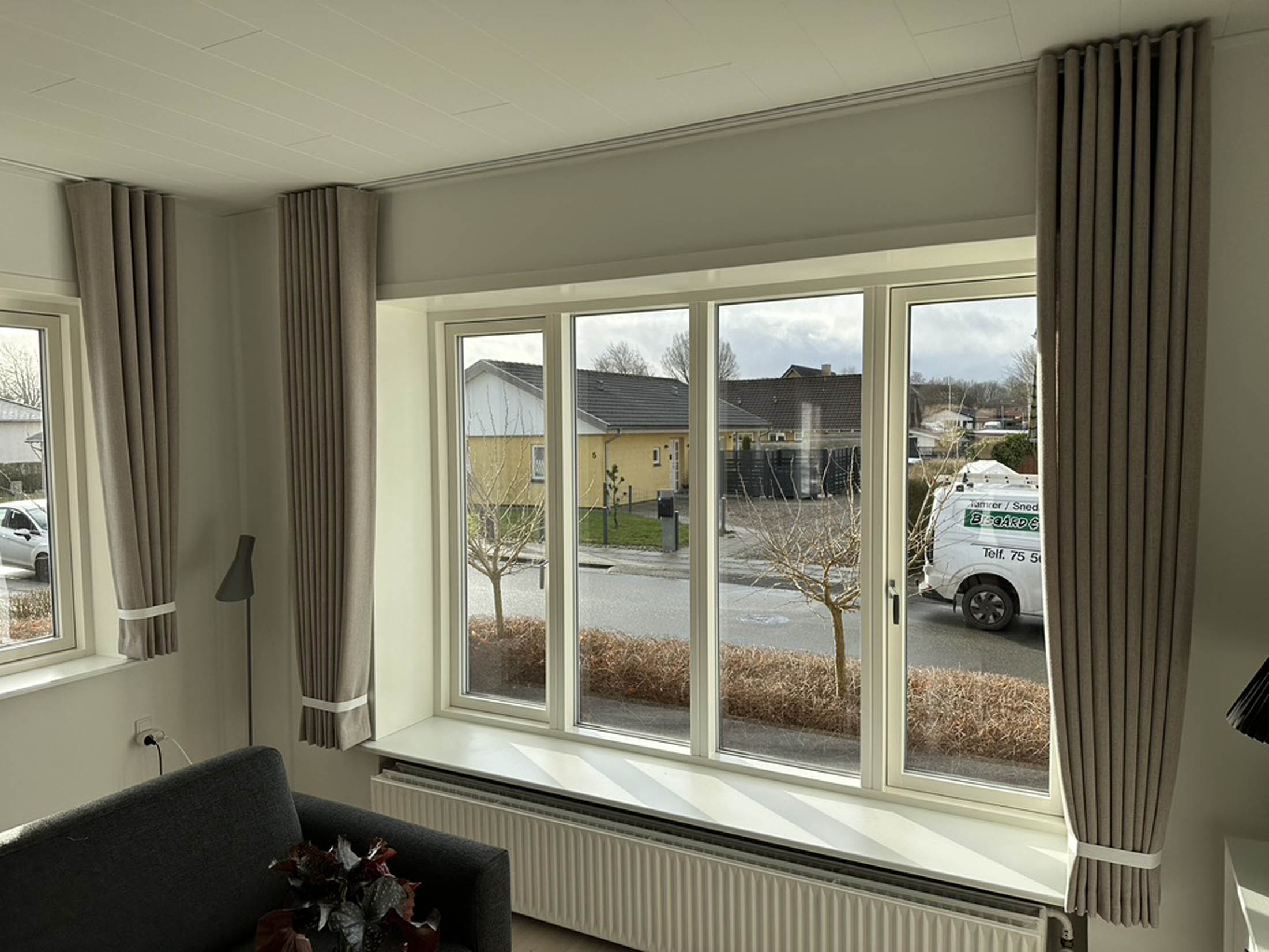 Besøg os i butikken eller ring ind og få os til at levere og montere nye gardiner til dit hjem.